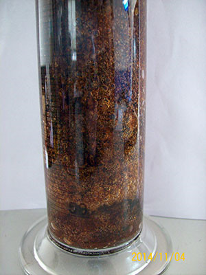 5. 取样分析发现树脂氧化严重,约有30%以上的树脂已经氧化破碎(图中呈乳白色的部分都是破碎成粉末的阴树脂)。